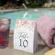 Rustic Pink Floral Spring Wedding Table Number Paper Table Tent
