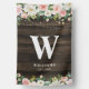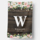 This rustic house flag features pink and white watercolor flowers, string lights and a dark faux wood background.