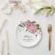 Rustic floral theme bridal shower paper plate featuring watercolor illustration of pink peony and greenery.