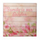Rustic Pink Flowers on Wood Ceramic Tile