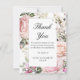 Beautiful pink rose floral arrangements and elegant calligraphy create a feminine and classy funeral note card.
