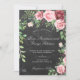 Rustic Pink Roses Monogram Chalkboard Wedding Invitation
