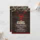 Rustic Plaid Deer Antlers Wood & String Lights Invitation