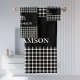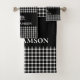 Rustic Plaid Monogram Bear | Black White Bath Towel Set