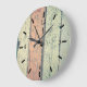 Rustic green and pink plank wall clock with a distressed decor. Would look great in any room!