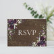 Rustic Plum Purple Gold Wood Fall Wedding RSVP Card