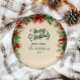 A festive Christmas party design framed with classic red poinsettias, pine branches, and winter greenery. The rustic vintage style captures the warmth and coziness of the holiday season, perfect for a traditional Christmas celebration.