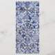 This design features rustic Portuguese tile patterns. The wedding text is elegantly framed with a white and gold color geometric shape. Unique Azulejo blue and white floral wedding menu card design with modern elements. Matching wedding invitations and other stationery items are also available.