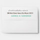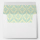 This envelope, has a customizable return address printed on the back flap. The inside lining is a cream and baby blue pattern.