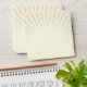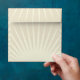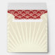 This envelope, with a large tan and cream star burst on the outside, has a customizable return address printed on the back flap. The inside lining is a red and ivory scalloped pattern.