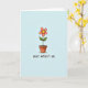This greeting card features a minimalist illustration set on a calm, pale blue background, where a single flower stands like a small token of affection ❤️. The bloom has five rounded coral petals that lean gently around a sunny yellow center, like a warm face turned toward someone you care about. A slim green stem rises from a burnt-orange pot, with two simple leaves angled outward as if reaching for a welcoming hug. Near the lower half, the message “HAPPY MOTHER’S DAY” appears centered in black lettering beneath the plant. The lines look softly drawn with light texture, giving the pot a slightly earthy look with tiny speckles that feel cozy and familiar. The open space around the flower keeps the focus on that quiet, caring gesture, like a friendly moment shared without needing many words 🌼. A few dark soil flecks sit at the base of the pot, grounding the orange container against the pale blue field.