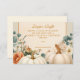 A charming autumn-inspired baby shower design featuring soft watercolor pumpkins, peach roses, eucalyptus greenery, and delicate fall florals. The rustic yet elegant style captures the warmth of the season, making it an inviting choice for celebrating the mom-to-be.