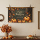 Welcome your loved ones this season with a customizable Thanksgiving banner that feels like a warm hug. This design captures the quintessential autumn mood with a bounty of plump pumpkins and vibrant fall leaves. The rich, earthy tones and a rustic, vine-wrapped frame create a cozy backdrop that perfectly complements your holiday décor. Personalize the elegant script with your family name to transform this banner into a heartfelt greeting.