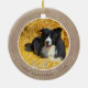 Rustic Puppy First Christmas Border Collie Dog Photo Ceramic Ornament. Custom photo in a round frame on a beige rustic background. Add your dog photo, name and year.