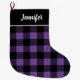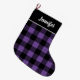 Rustic Purple and Black Buffalo Check Monogram Large Christmas Stocking
