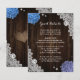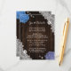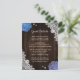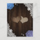 Provide your guests with important details with this rustic purple and blue floral wedding enclosure card featuring blue and purple hydrangea flowers on a barn wood background adorned with white floral lace.