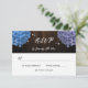 Cute rustic purple and blue floral wedding RSVP card featuring purple and blue hydrangea flowers on a rustic wood background. Perfect card design to complement your purple and blue rustic wedding party. Matching items available.