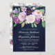 Rustic Purple Floral Navy Blue QR Code Wedding Invitation