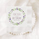 Beautiful rustic wedding napkins featuring a charming purple and green floral wreath surrounding the couple's names and wedding date in elegant typography. The wildflower and greenery design creates a romantic botanical frame. Customize with your names and date for a coordinated reception table detail.