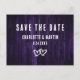 This simple wedding save the date postcard is ideal for a purple rustic country/barn wedding party.