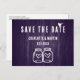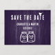 Minimalist rustic wedding save the date postcard with modern calligraphy ideal for a purple rustic country/backyard/barn wedding party.