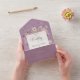 AVAILABLE WITH OR WITHOUT A QR CODE OR DINNER SELECTION OPTIONS. This design features an aged lavender purple background with a soft white text frame surrounded by delicate wildflowers. Created by Simply Farmhouse Press.