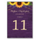 Rustic Purple Wood String Lights Sunflower Wedding Table Number