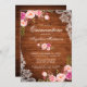 Rustic Quinceanera Wood Lace Pink Floral Invitation