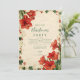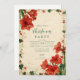 A bold and festive Christmas design with vibrant red amaryllis flowers, holly leaves, and winter greenery. The rich botanical frame creates a warm rustic holiday feel, perfect for sending joyful seasonal greetings.