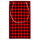 Rustic checkered trendy gift bag featuring red and black buffalo plaid pattern, festive gifts wrapping