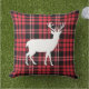 Rustic Red And Black Plaid Deer Christmas Outdoor Pillow.