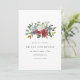 Simple and pretty rustic red and blue watercolor bouquet wedding save the date card with a solid blue back.