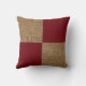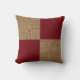 Rustic Red and Tan Large Squares Burlap Throw Pillow