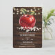 Plain white envelopes are included with paper invitations and will come to fit the invitation size you select. If you don’t need the envelopes, you may choose to not receive them by selecting the dropdown below "Envelopes" and choosing "None." If you’d like to have a design on your envelopes, you can browse all of these available envelopes to find the design that complements your Rustic Red Apple Floral Baby Shower Invitation.