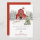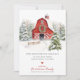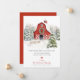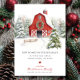 This festive winter moving announcement Christmas card features a red barn with a green wreath, set against a snowy landscape and trees. The card is perfect for sending to friends and family during the holiday season to let them know about your new address while also sharing your love of the country. The overall design is festive and charming, and the card is sure to put a smile on the faces of your loved ones.