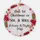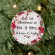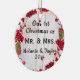 Our 1st Christmas as Mr & Mrs ornament, with personal photo on reverse. Rustic red winter berries theme background. Charming and homey keepsake of your wedding day!