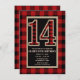 Rustic Red Black Buffalo Plaid 14th 14 Birthday Invitation