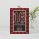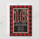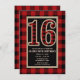 Rustic Red Black Buffalo Plaid 16th 16 Birthday Invitation