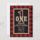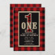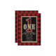 Rustic Red Black Buffalo Plaid 1st Birthday Party Invitation