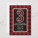 Rustic Red Black Buffalo Plaid 3RD Birthday Party Invitation