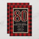 Rustic Red Black Buffalo Plaid 80th 80 Birthday Invitation