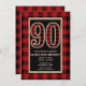 Rustic Red Black Buffalo Plaid 90th 90 Birthday Invitation
