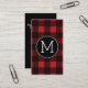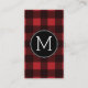 Rustic Red Black Buffalo Plaid Pattern Monogram Business Card