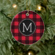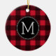 Rustic Red & Black Buffalo Plaid Pattern Monogram Ceramic Ornament