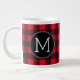 Rustic Red & Black Buffalo Plaid Pattern Monogram Giant Coffee Mug