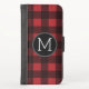 Rustic Red & Black Buffalo Plaid Pattern Monogram iPhone Wallet Case
