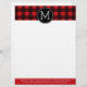 Rustic Red & Black Buffalo Plaid Pattern Monogram Letterhead