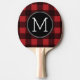 Rustic Red & Black Buffalo Plaid Pattern Monogram Ping-Pong Paddle