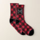 Rustic Red & Black Buffalo Plaid Pattern Monogram Socks