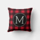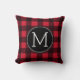 Rustic Red & Black Buffalo Plaid Pattern Monogram Throw Pillow
